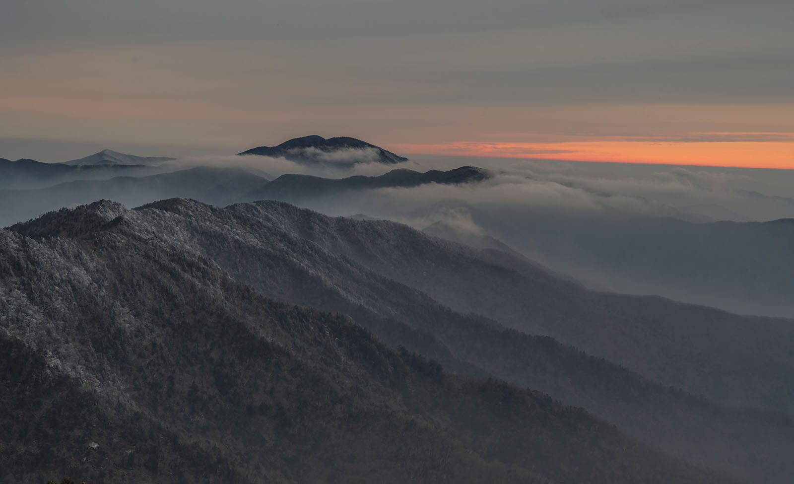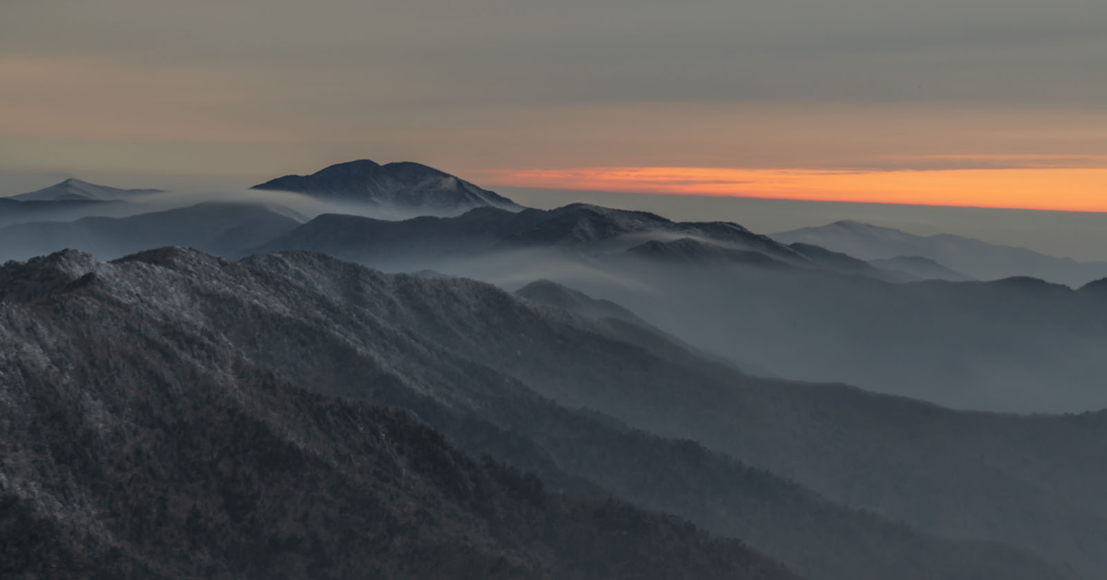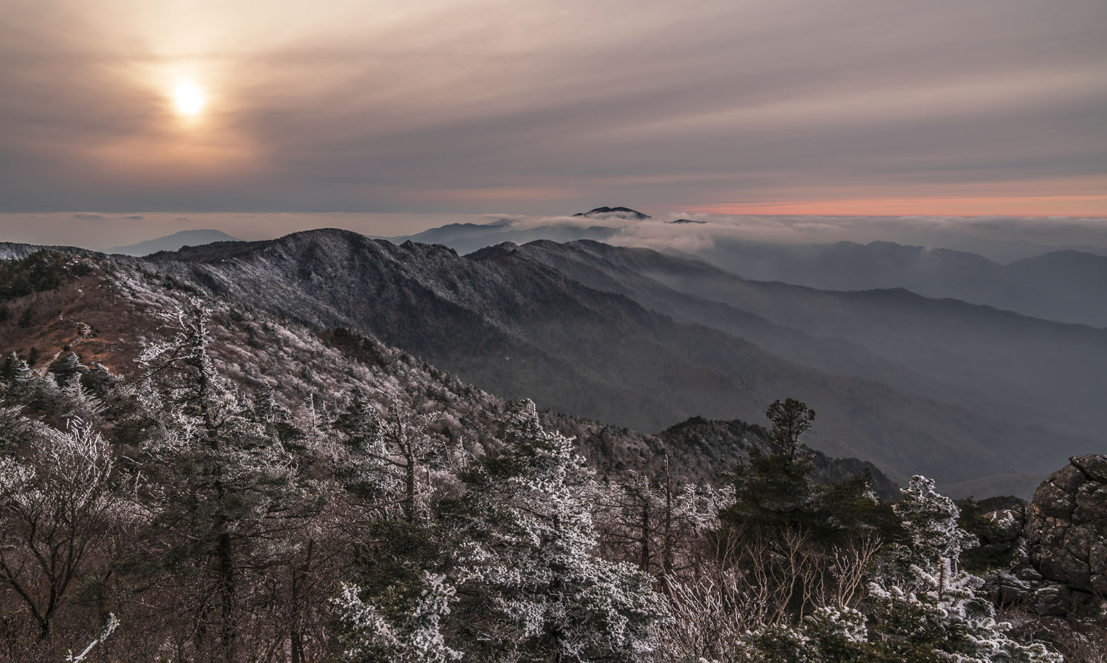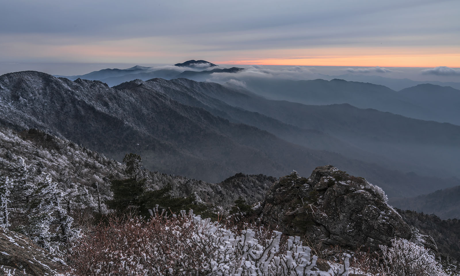 먼 산 천왕봉 주변에는 상고대가 만발 도사 발길을 빠르게 재촉하지만 체력의 한계인지 나이 탓인지 발걸음은